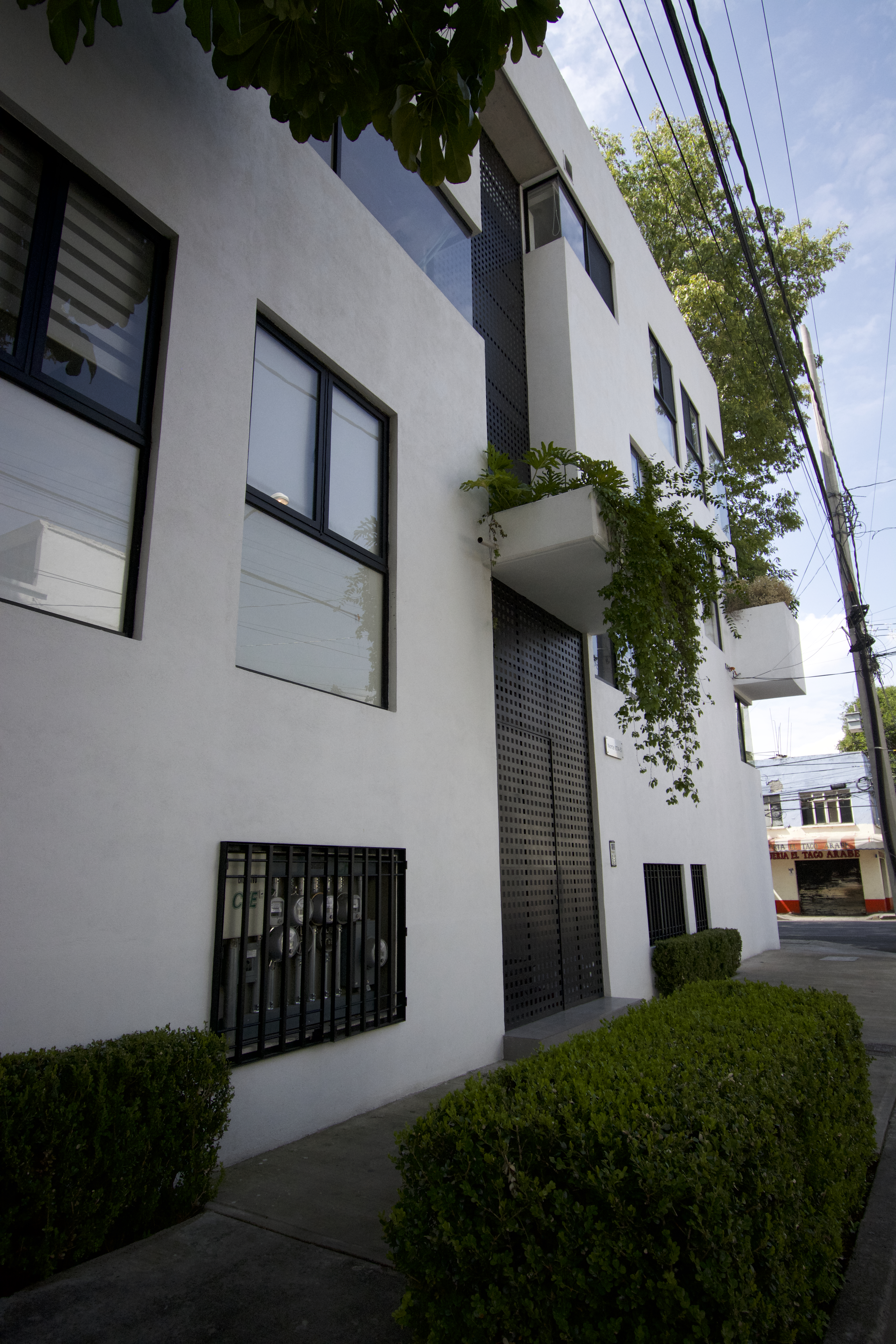 En un terreno de esquina de 336m2, se levanta un edificio de tres niveles sobre nivel banqueta, y un semisótano. Los seis departamentos estarán distribuidos en dos unidades por planta comunicados a través de un corredor con escalera.