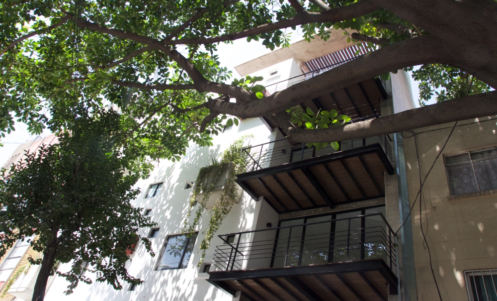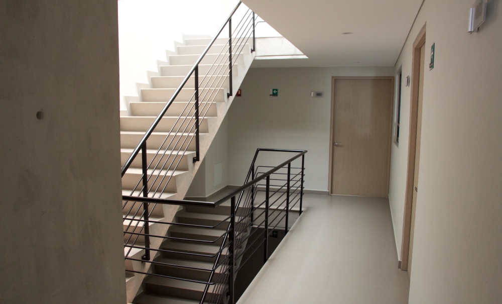 Edificio de cuatro niveles habitacionales con 3 unidades por planta, organizadas a través de 2 patios jardinados. Cuentan con un estacionamiento subterráneo con capacidad de un auto por departamento.