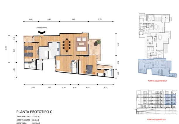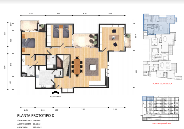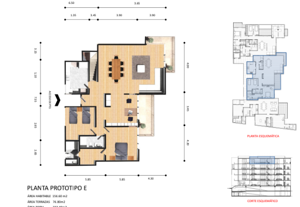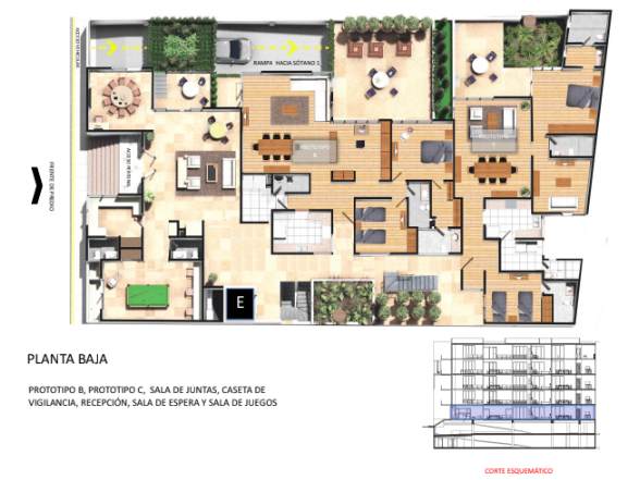 Departamentos prototipo B, prototipo C, Sala de Juntas, Caseta de Vigilancia, Sala de Espera y Sala de Juegos