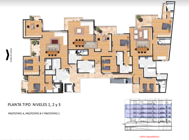 Cuenta únicamente con 14 departamentos distribuidos en 5 niveles. Te encantará su esquema de patios jardin y sus terrazas arboladas.